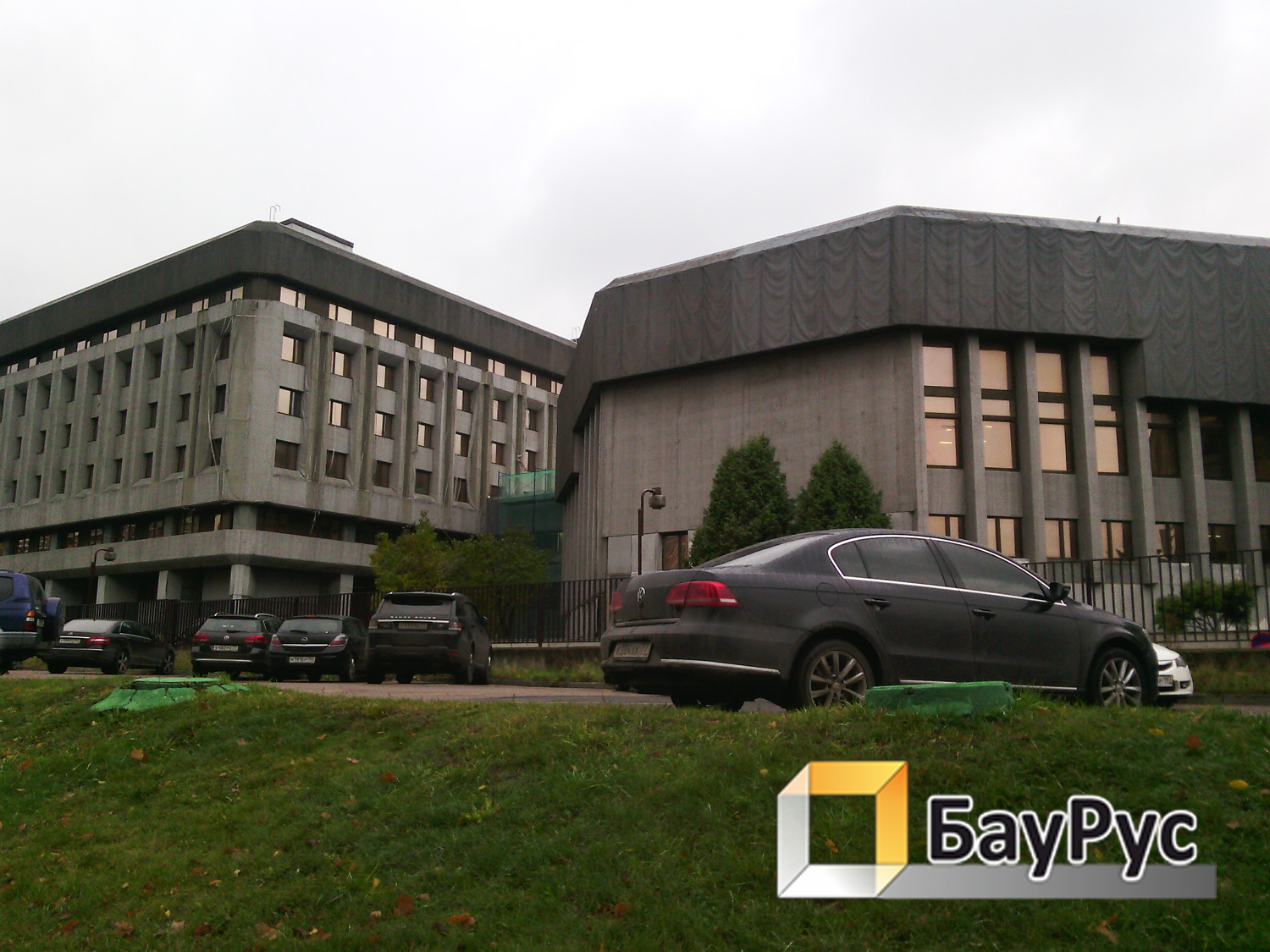 Немецкое посольство Администратор, Адрес: г. Москва, Ленинский проспект, д.95а Вид работ: устройство механически-закрепляемой кровли Площадь: 400 кв.м. Тип мембраны: Мембрана ТПО THERMOPLAN T15V